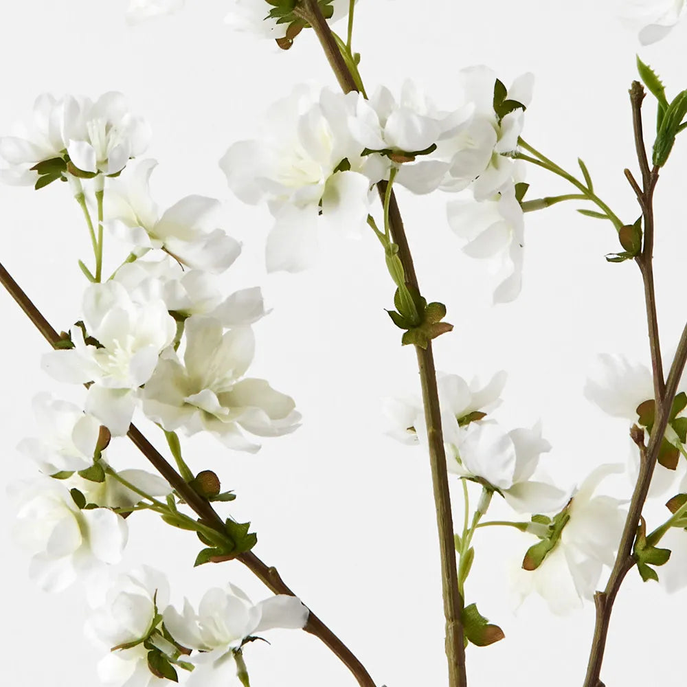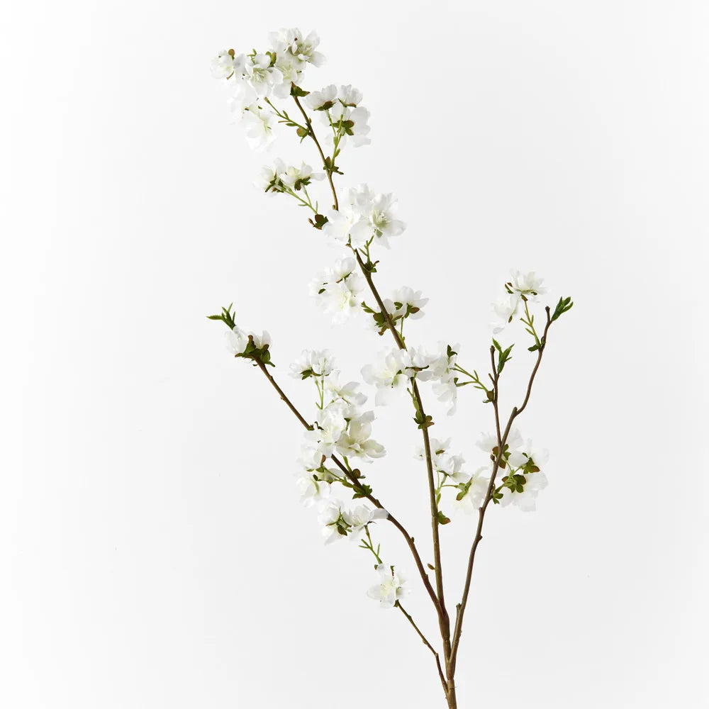 Bring the garden indoors with this gorgeous blossom cherry in white. With minimal maintenance this faux blossom cherry can offer enduring beauty and bring warmth and vibrancy to your home or interior space. Style this blossom cherry simply in a beautiful bunch on their own or create an arrangement from Dahlia & Dove's variety of artificial flowers for impact.