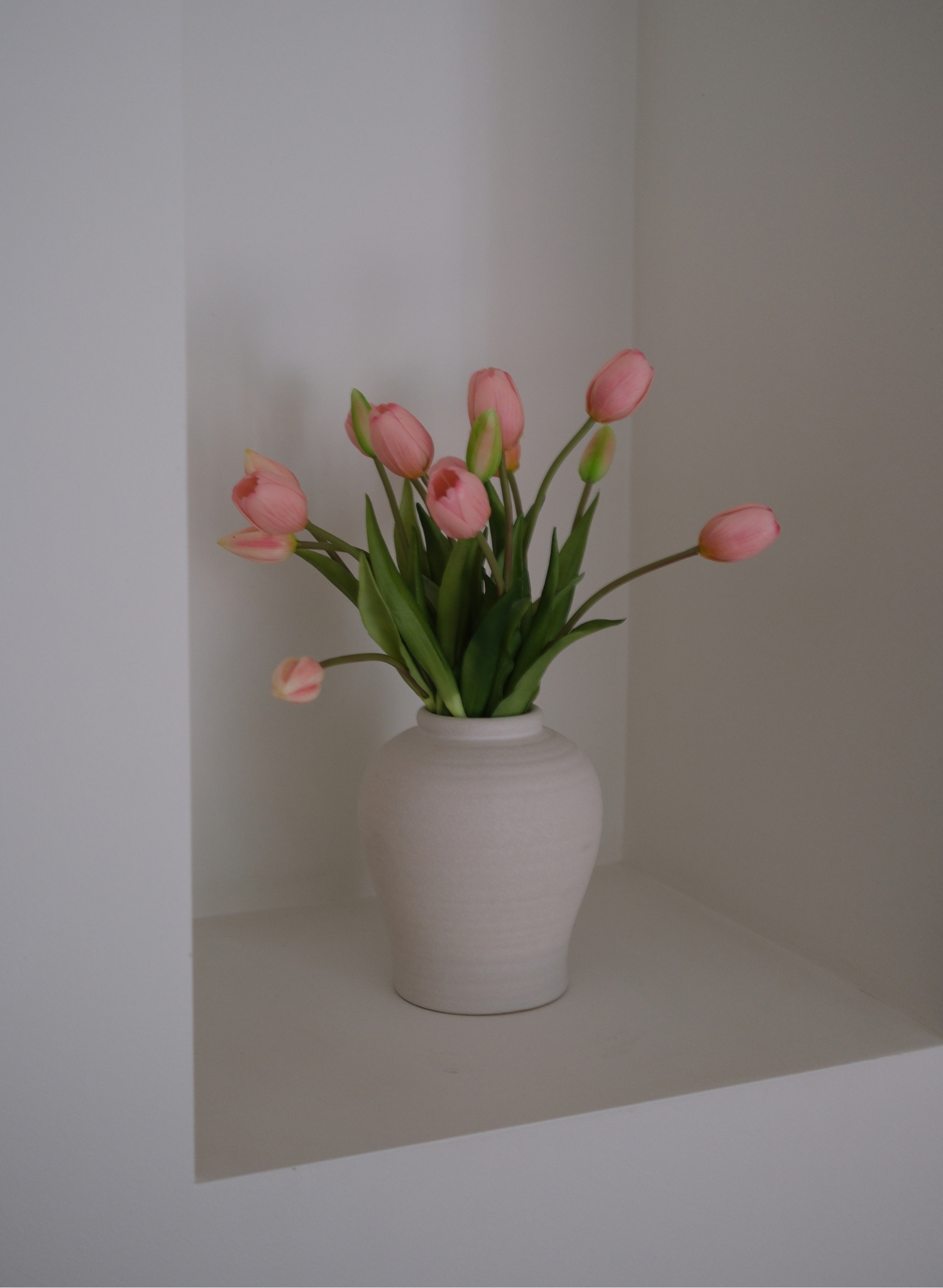 Crafted in a real-touch finish, its petals and leaves offer a remarkable softness and lifelike texture that mimics the look and feel of fresh tulips.