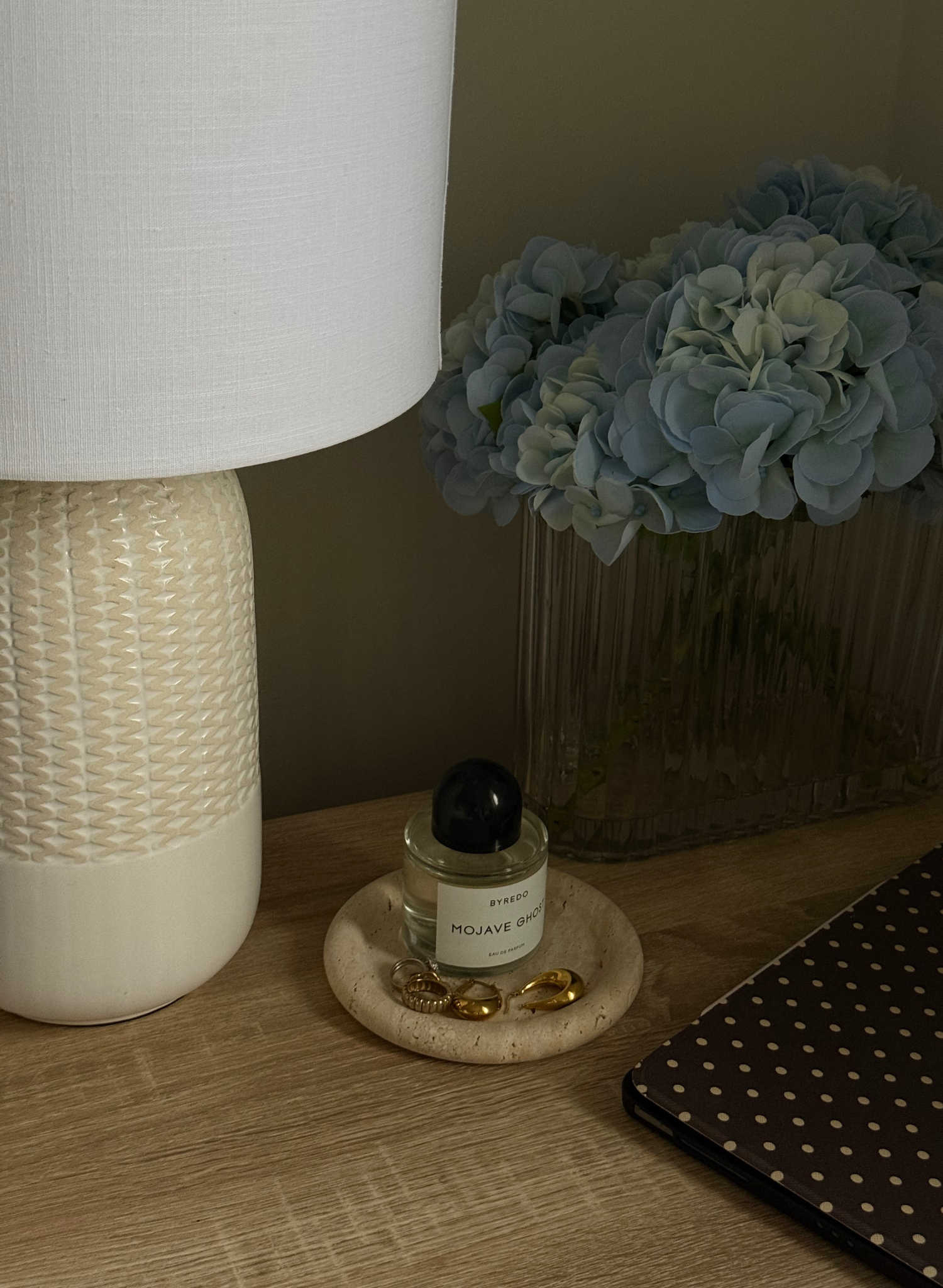The Travertine Tray is both functional and sculptural, perfect for styling candles, perfumes, jewellery, or your favourite décor accents.